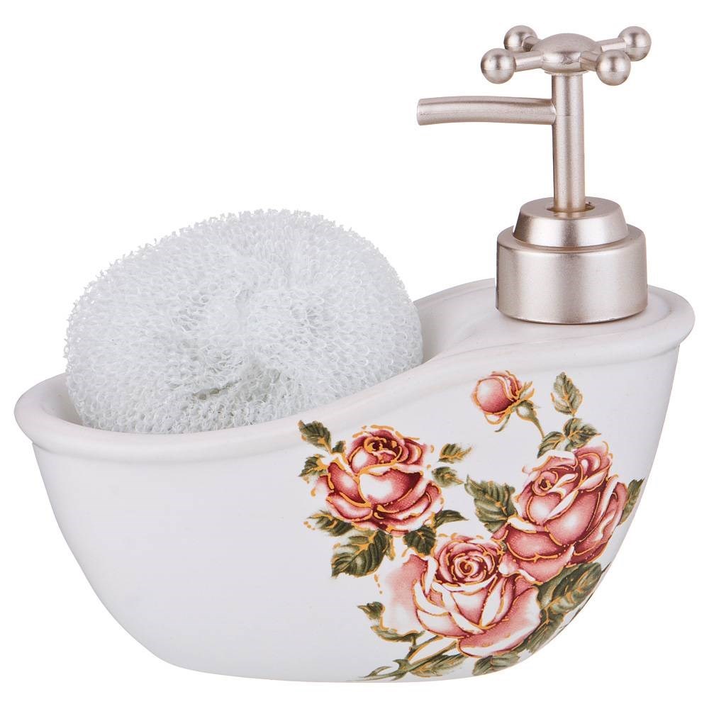Дозатор для моющего средства "Корейская роза" 300 мл + губка 15*7*15 см