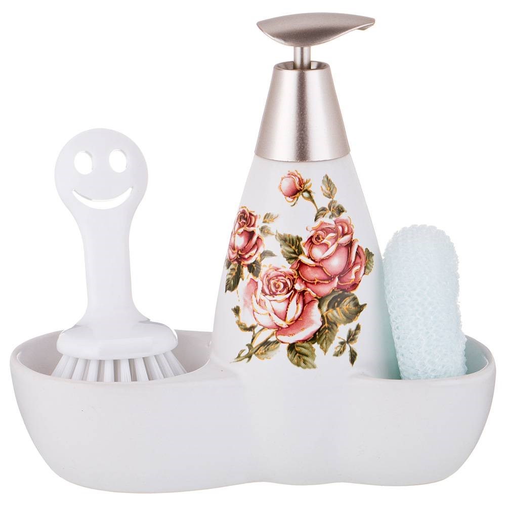 Дозатор для моющего средства "Корейская роза" 500 мл + губка и щетка 20*9*18 см