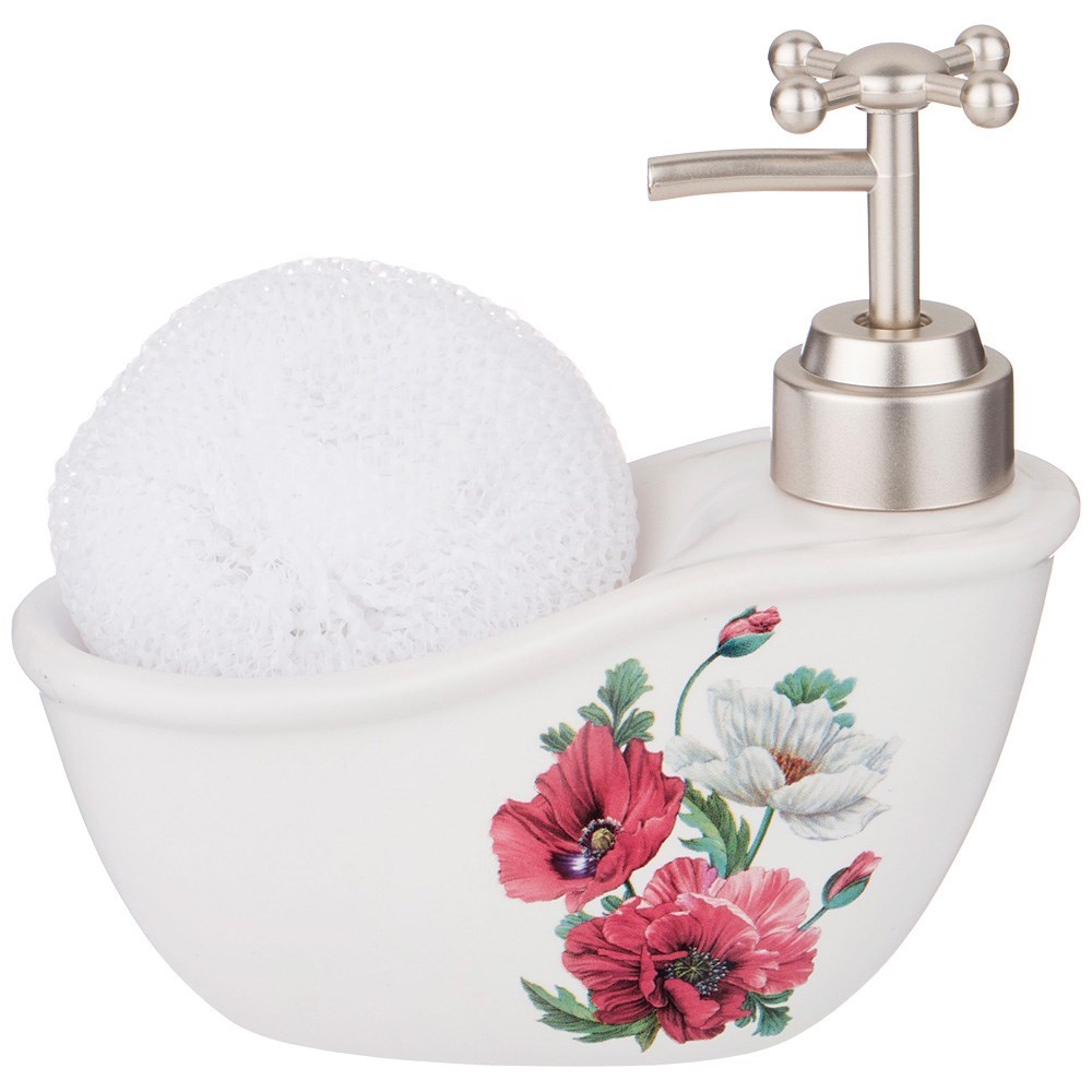 Дозатор для моющего средства "Маки" 300 мл + губка 15*7*15 см