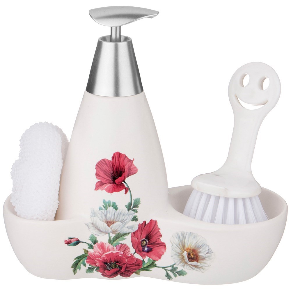 Дозатор для моющего средства "Маки" 500 мл + губка и щетка 20*9*18 см