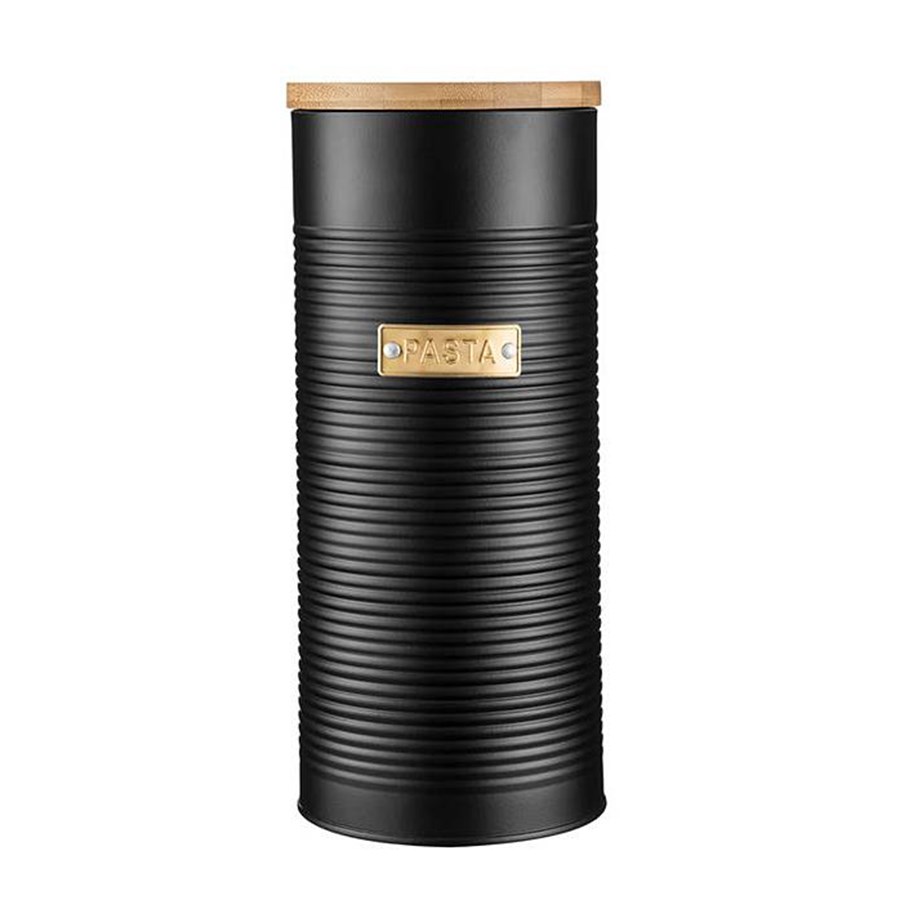 Емкость для хранения пасты Otto поможет максимально освободить рабочее пространство на вашей кухне. Эргономичный контейнер из эмалированной стали подходит для всех видов макаронных изделий. Бамбуковая крышка с воздухопроницаемым уплотнителем из силикона продлевает свежесть продуктов. При создании изделия дизайнеры используют золотистый декор, который безупречно сочетается с матовым покрытием черного цвета. Благодаря этому емкость добавит элегантности классическому и современному интерьеру кухни.