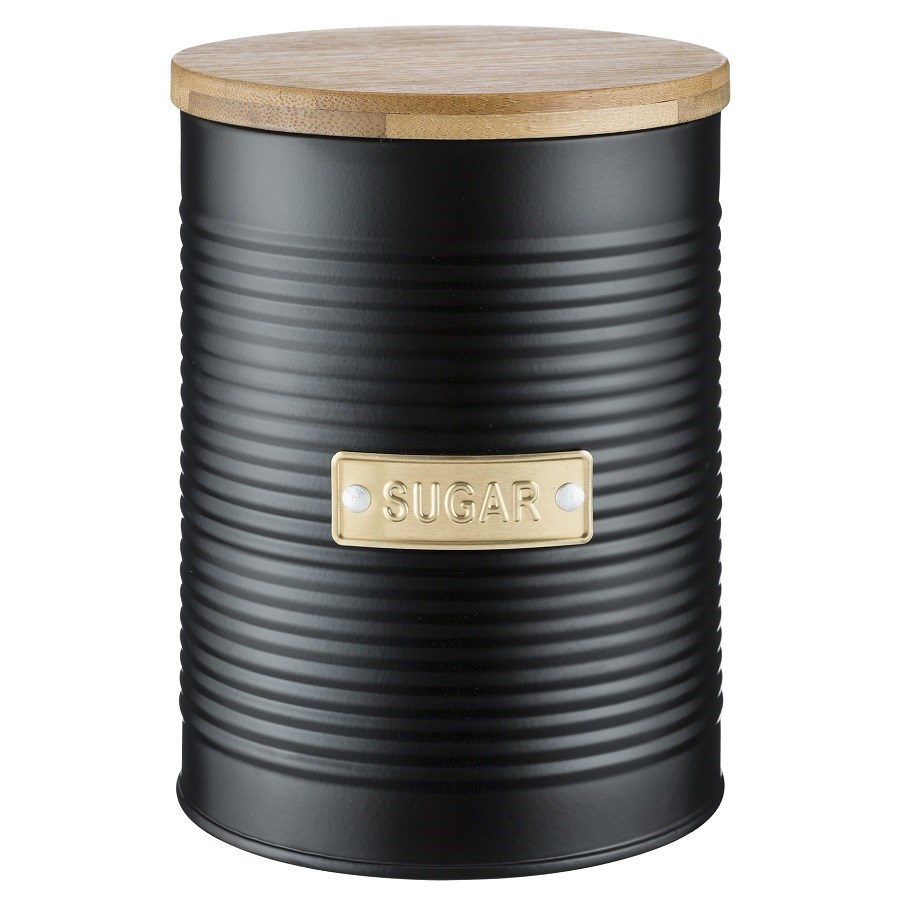 Емкость для хранения сахара Otto поможет организовать рабочее пространство на вашей кухне. Эргономичный контейнер выполнен из эмалированной стали, стойкой к коррозии и деформации. Бамбуковая крышка с воздухопроницаемым уплотнителем из силикона продлевает свежесть продуктов и защищает их от воздействия влаги. При создании изделия дизайнеры используют золотистый декор, который безупречно сочетается с матовым покрытием черного цвета. Благодаря этому емкость добавит элегантности классическому и современному интерьеру кухни.