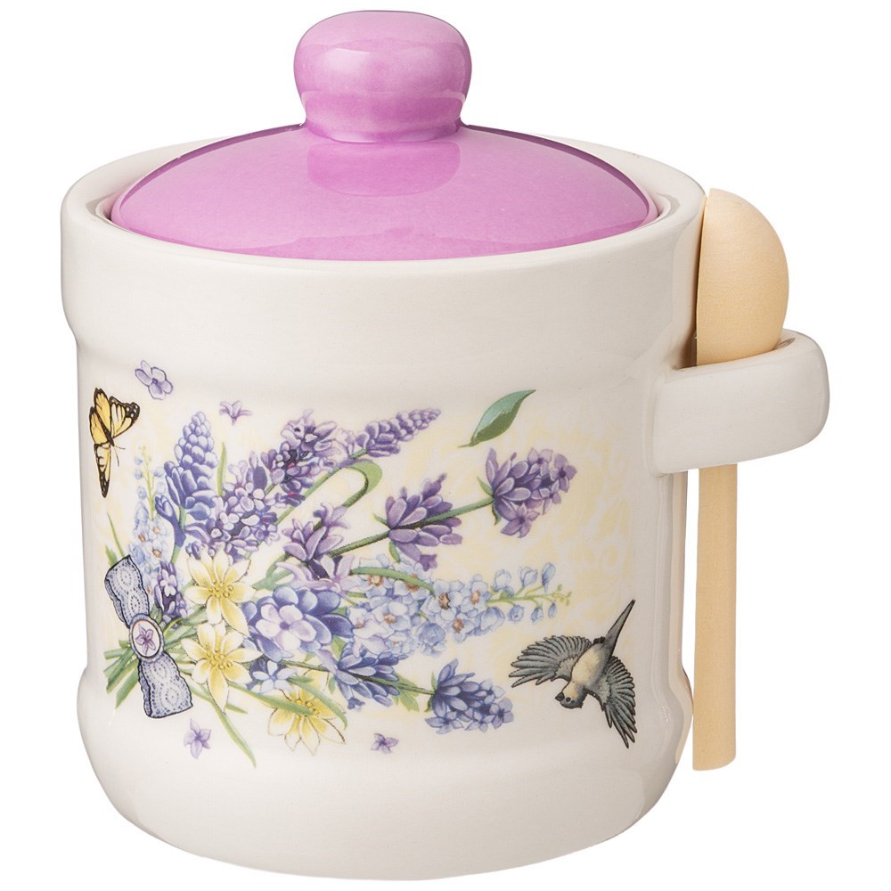 Емкость для сыпучих продуктов с ложкой "Прованс лаванда" 13*11 см H=12 см / 300 мл