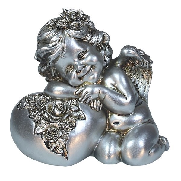Фигука декоративная Ангел Сердце роз цвет: серебро L15W9H13см
