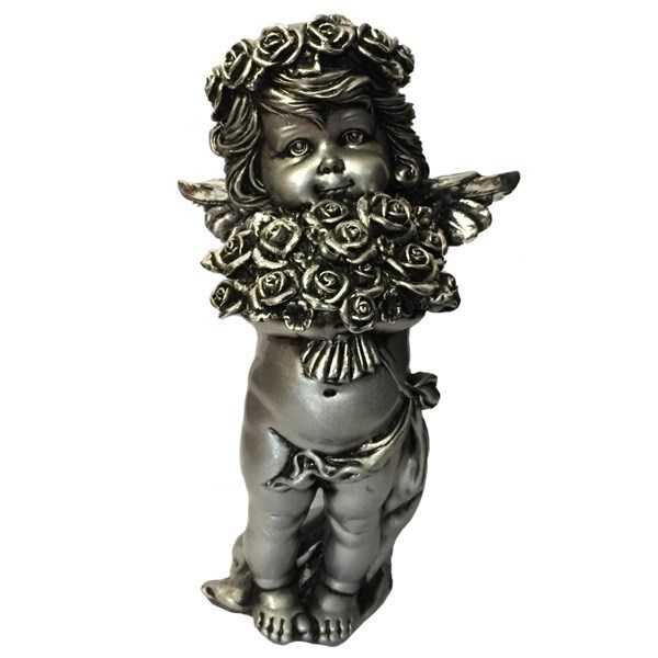 Фигурка декоративная Ангел с розами серебристый L12.5W9Н22см.