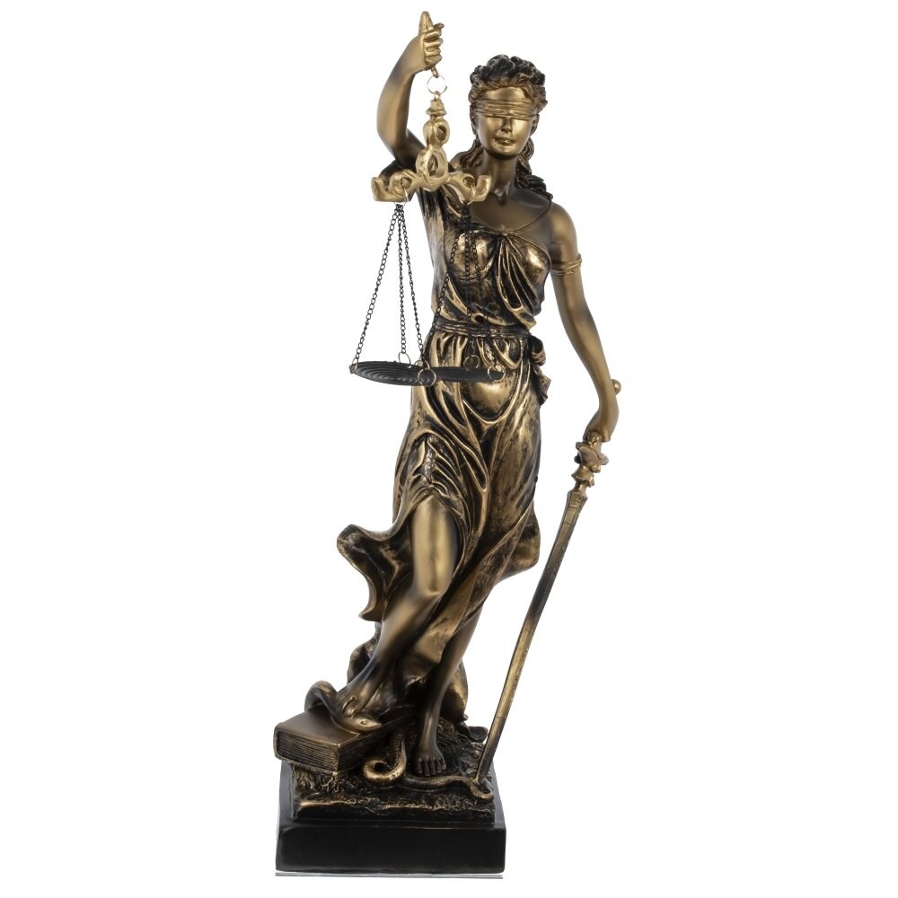 Фемида - Богиня правосудия. Изображается с повязкой на глазах, весами и мечом в руках. Фигурка станет отличным подарком судье, адвокату, нотариусу, преподавателю права и всем, кто так или иначе связан с правосудием. Фемида займет достойное место в кабинете дома или на работе. Фигурка изготовлена из полистоуна (искусственного камня).