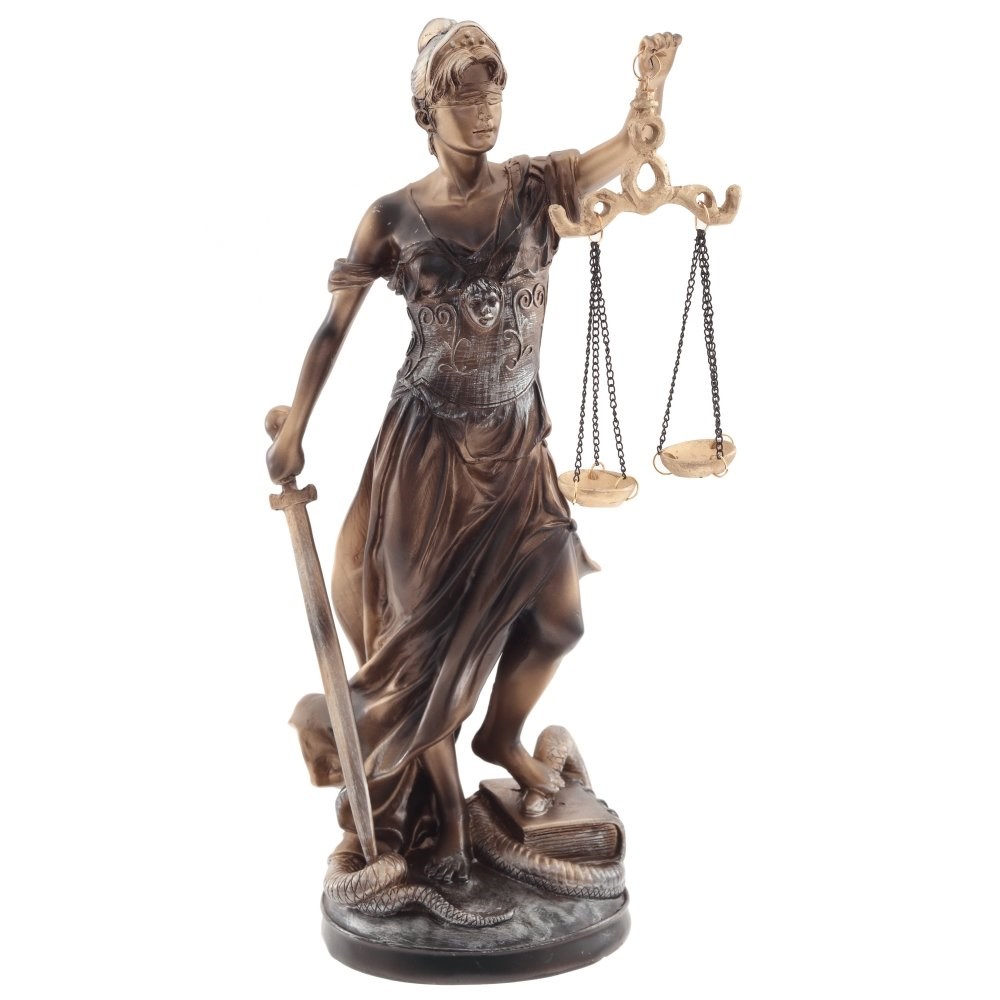 Фемида - Богиня правосудия. Изображается с повязкой на глазах, весами и мечом в руках. Фигурка станет отличным подарком судье, адвокату, нотариусу, преподавателю права и всем, кто так или иначе связан с правосудием. Фемида займет достойное место в кабинете дома или на работе. Фигурка изготовлена из полистоуна (искусственного камня).