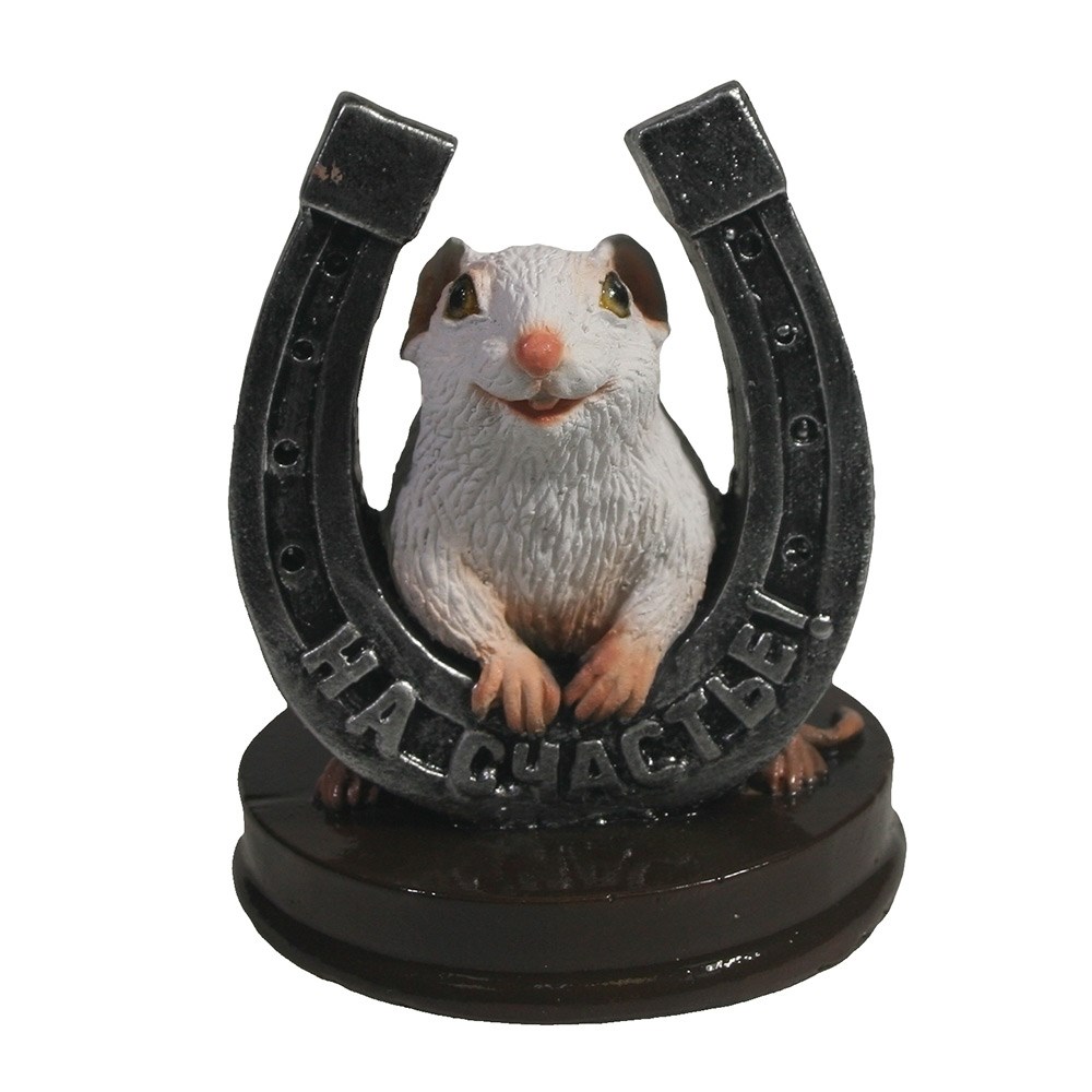 Фигурка декоративная Крыса с серебряной подковой На счастье (белый) L7 W7 H9,5 см