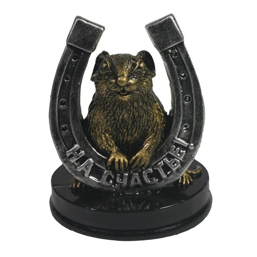 Фигурка декоративная Крыса с серебряной подковой На счастье (бронза) L7 W7 H9,5 см