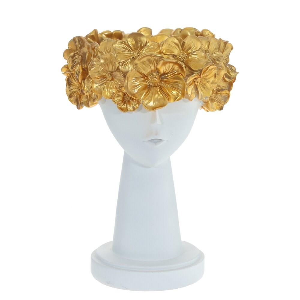 Фигурка декоративная, выполненная в форме головы, украшенной венком из листьев золотого цвета, станет отличным дополнением любого интерьера. Также ее можно использовать в качестве кашпо и для хранения разных мелочей.