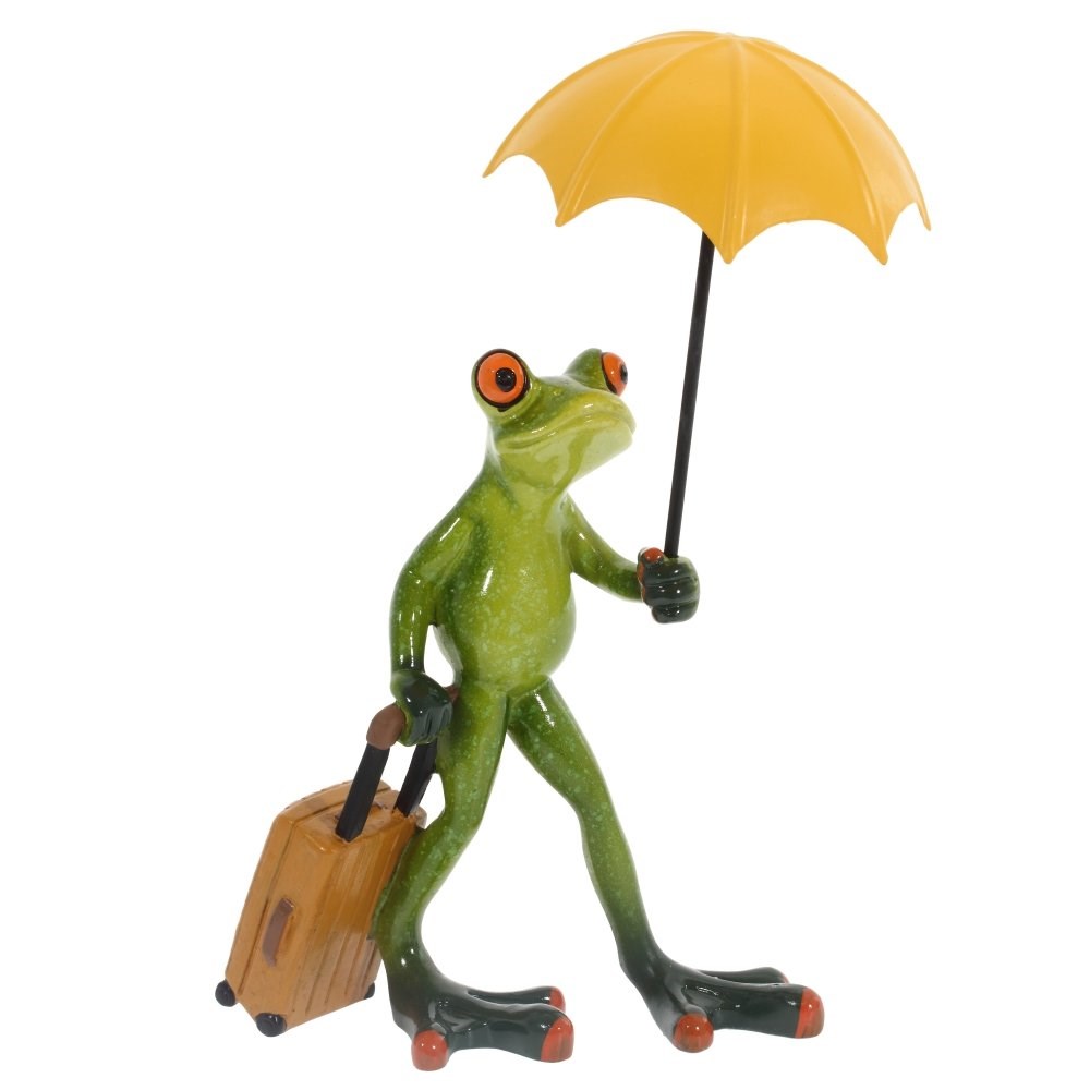 Яркая фигурка лягушки с зонтом невероятно позитивная и обаятельная. Идеально подходит для подарка себе, друзьям и близким. Украсит и сделает Ваш дом более уютным.