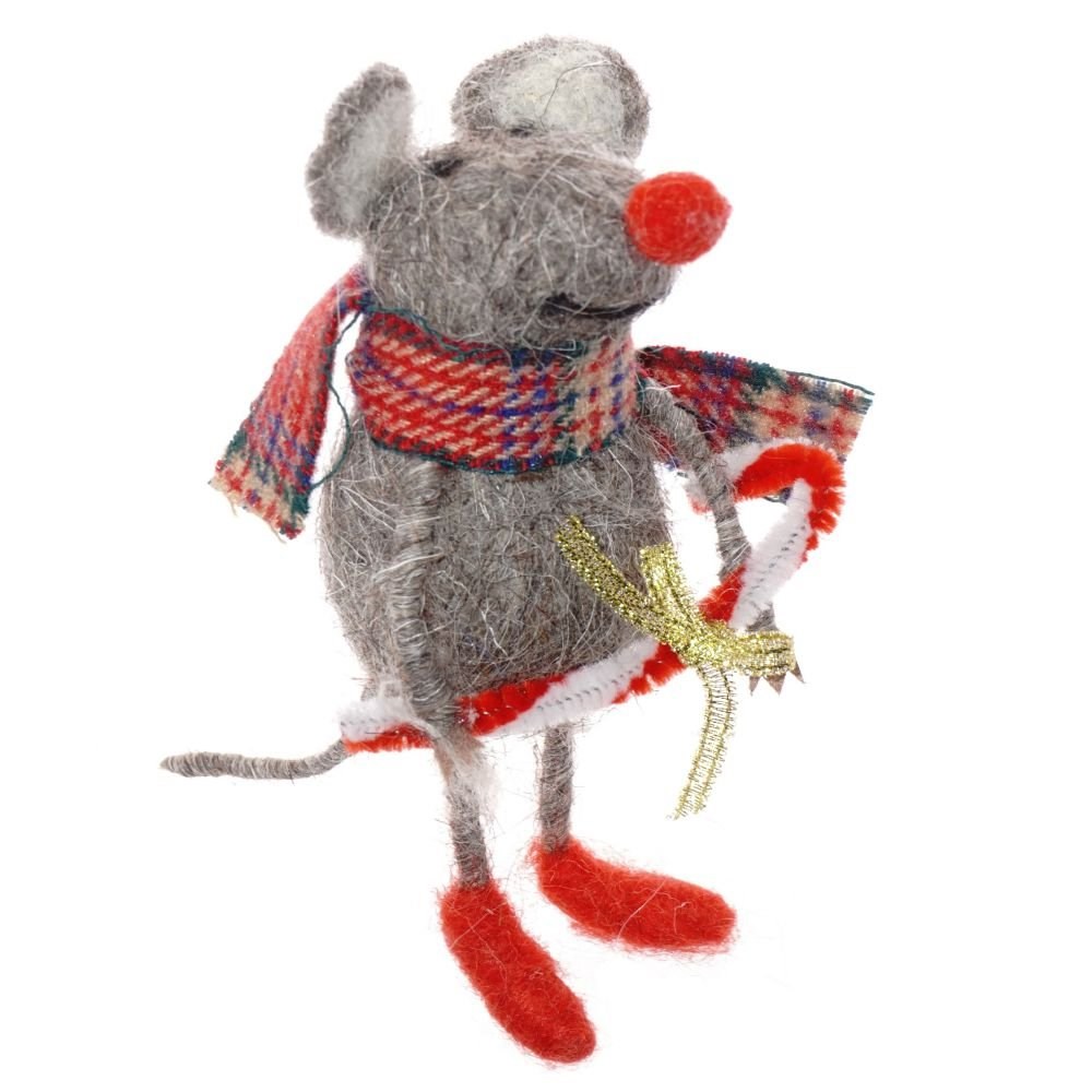 Фигурка декоративная "Мышка", изготовлена из текстиля. Размер: L12 W4 H14 см