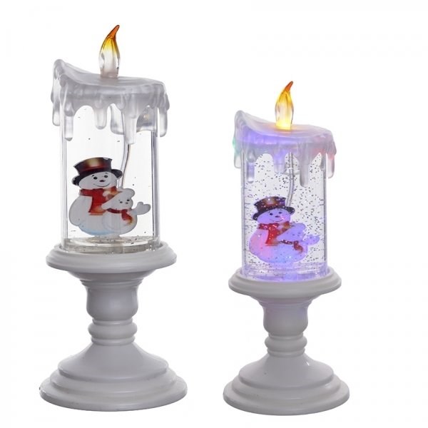 Фигурка новогодняя с подсветкой и генератором вьюги, изготовлена из полимерных материалов. Фонарь заполнен водой с глитером, имитирующем снег. Работает 3-х батареек ААА (не прилагаются). Размер: 10х10х26 см, упаковка - коробка.
