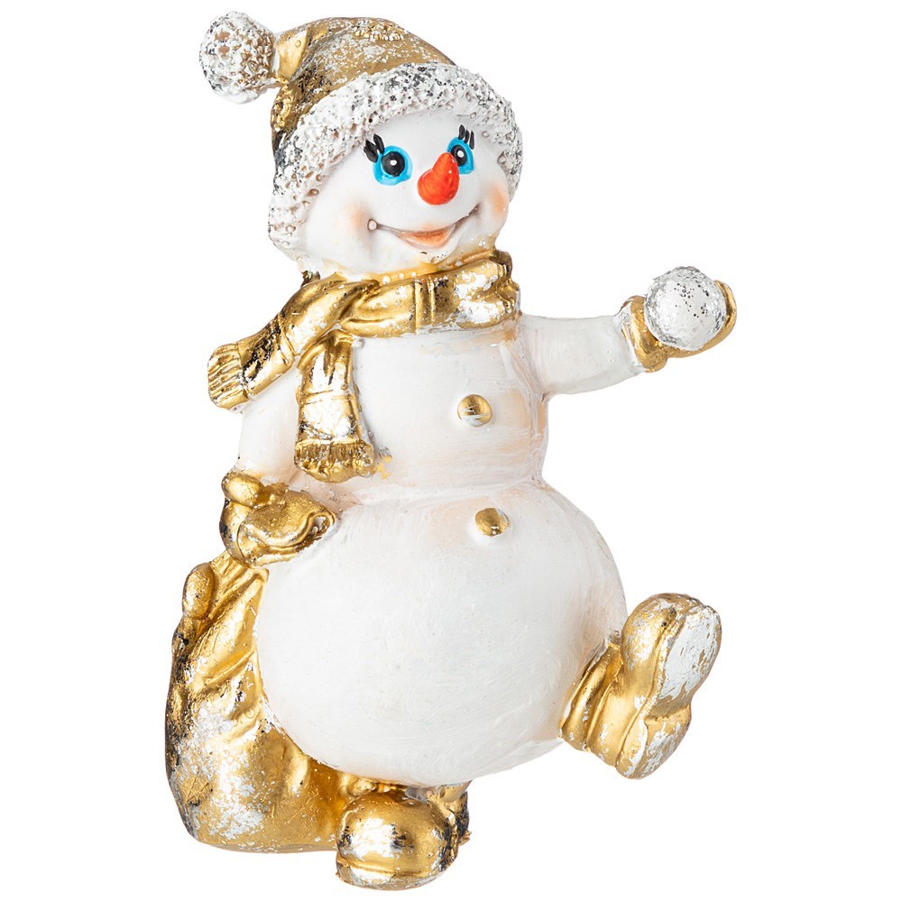Фигурка декоративная "Снеговичок с мешком подарков и снежком"