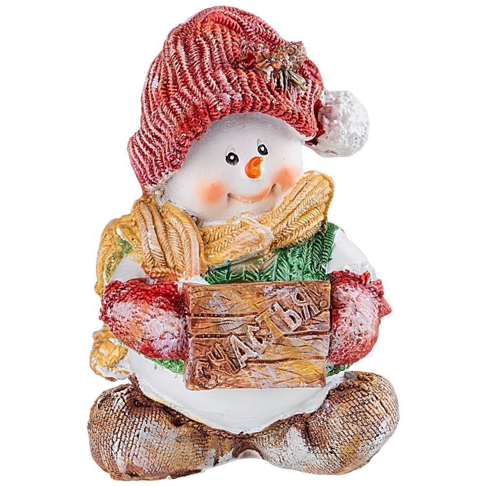 Фигурка декоративная "Снеговичок с табл."счастья"