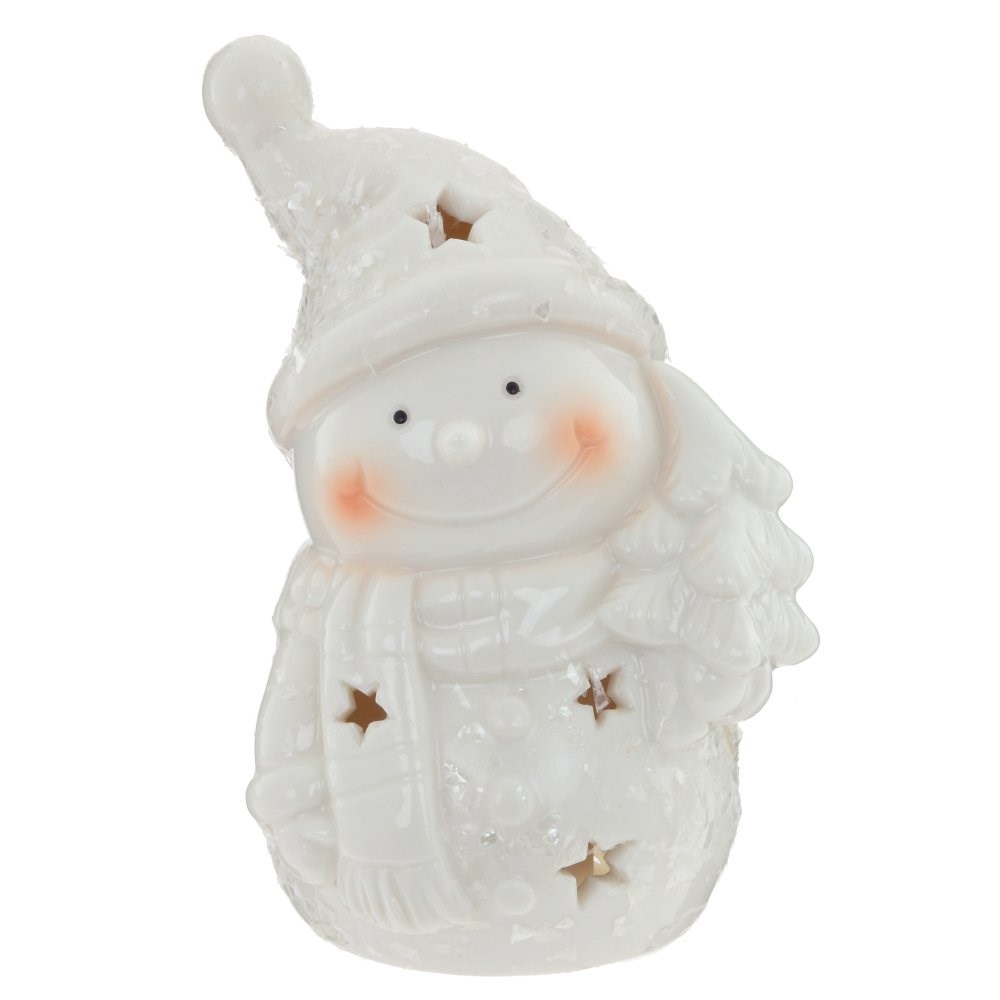Чудесная фигурка снеговика станет настоящей изюминкой Вашего интерьера. Одним нажатием клавишы на снеговичке зажгутся яркие звёздочки.Фигурка декоративная "Снеговик с подсветкой, изготовлена из керамики. Работает от двух батареек LR44.