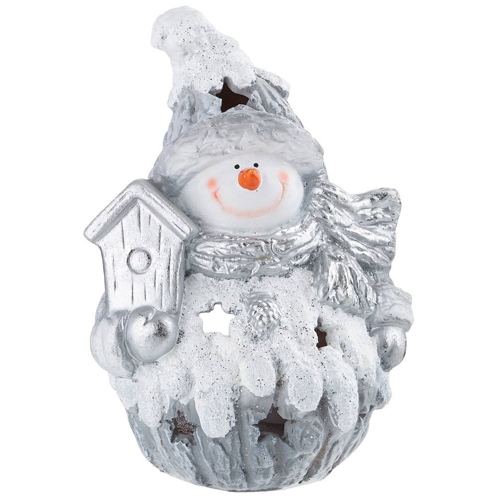Фигурка декоративная "Снеговик с скворечником" с подсветкой