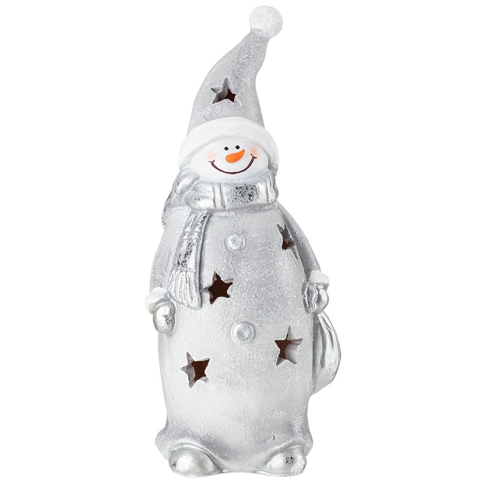 Фигурка декоративная "Снеговик в колпаке с мешком" с подсветкой