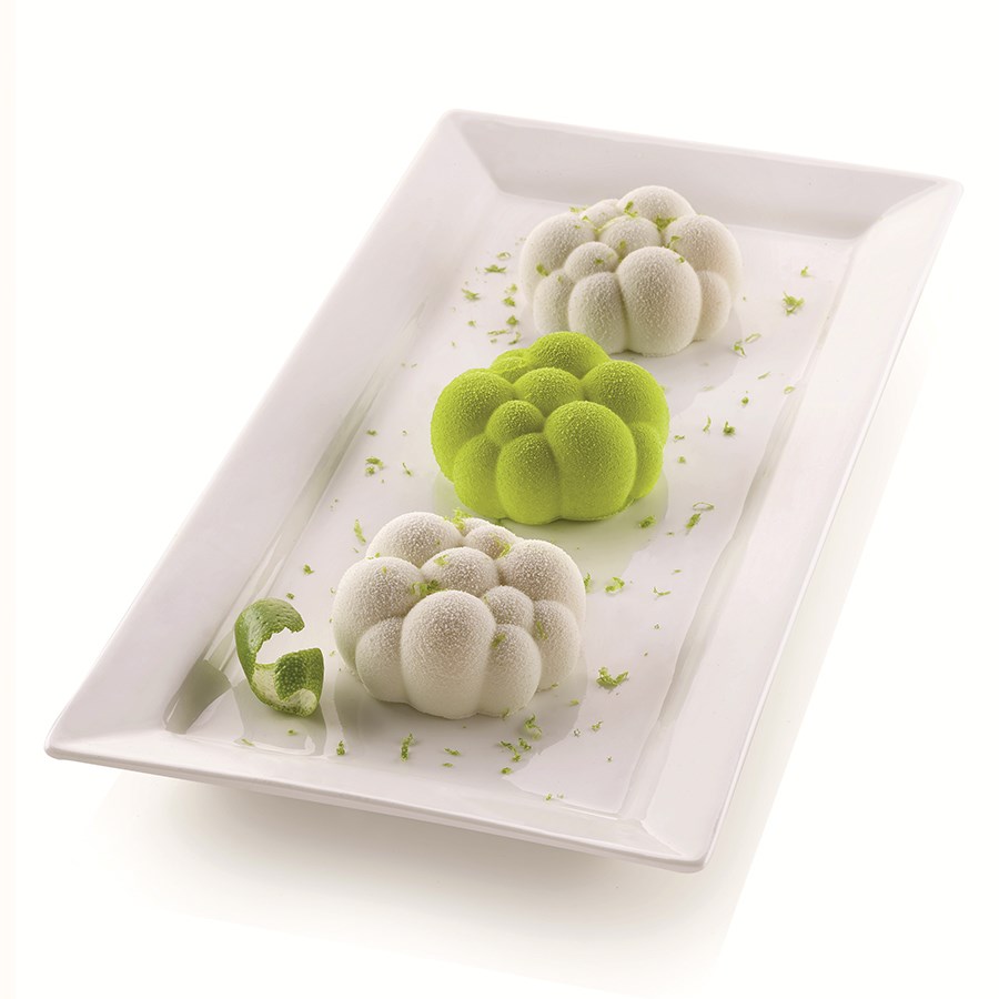 Дополнительная рамка придает десерту округлую форму. Форма выдерживает температуру от - 60 до + 230 °С. Силикон не содержит вредный бисфенол-А и соответствует европейским стандартам качества. Он не имеет запаха и не дымится во время готовки. Материал гибкий, прочный, устойчивый к перепадам температур. Форма выдерживает до 3000 использований. Перед использованием необходимо смазать изделие маслом. Диаметр ячейки: 7 см, объем: 85 мл.
