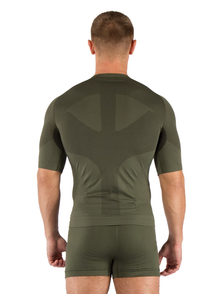 Мужская футболка Abel выполнена бесшовной вязкой «сеткой». Меньшая плотность материала в местах естественного потоотделения обеспечивает хорошую вентиляцию кожи. Короткий рукав и круглая горловина позволяют использовать футболку в теплое время года как основную одежду или как термобелье в холода.