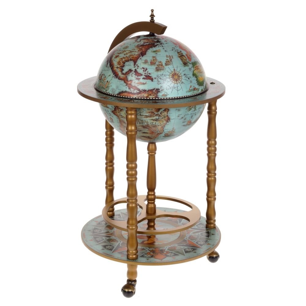 Напольный глобус-бар представляет собой предмет со специальными отделениями для хранения алкогольных напитков, а также фужеров. Это функциональное изделие и одновременно удобное, практичное и мобильное. Является украшением интерьера рабочего кабинета или гостиной комнаты.