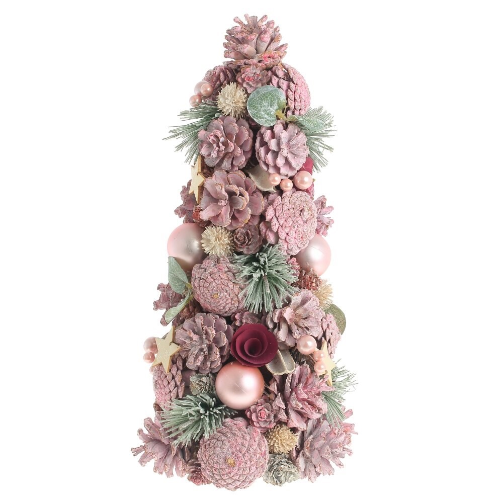 Очаровательная ёлка из шишек, искусственных хвойных веток, шаров и цветов станет прекрасным украшением для дома. Послужит чудесным сувениром и милым напоминанием о волшебном празднике.