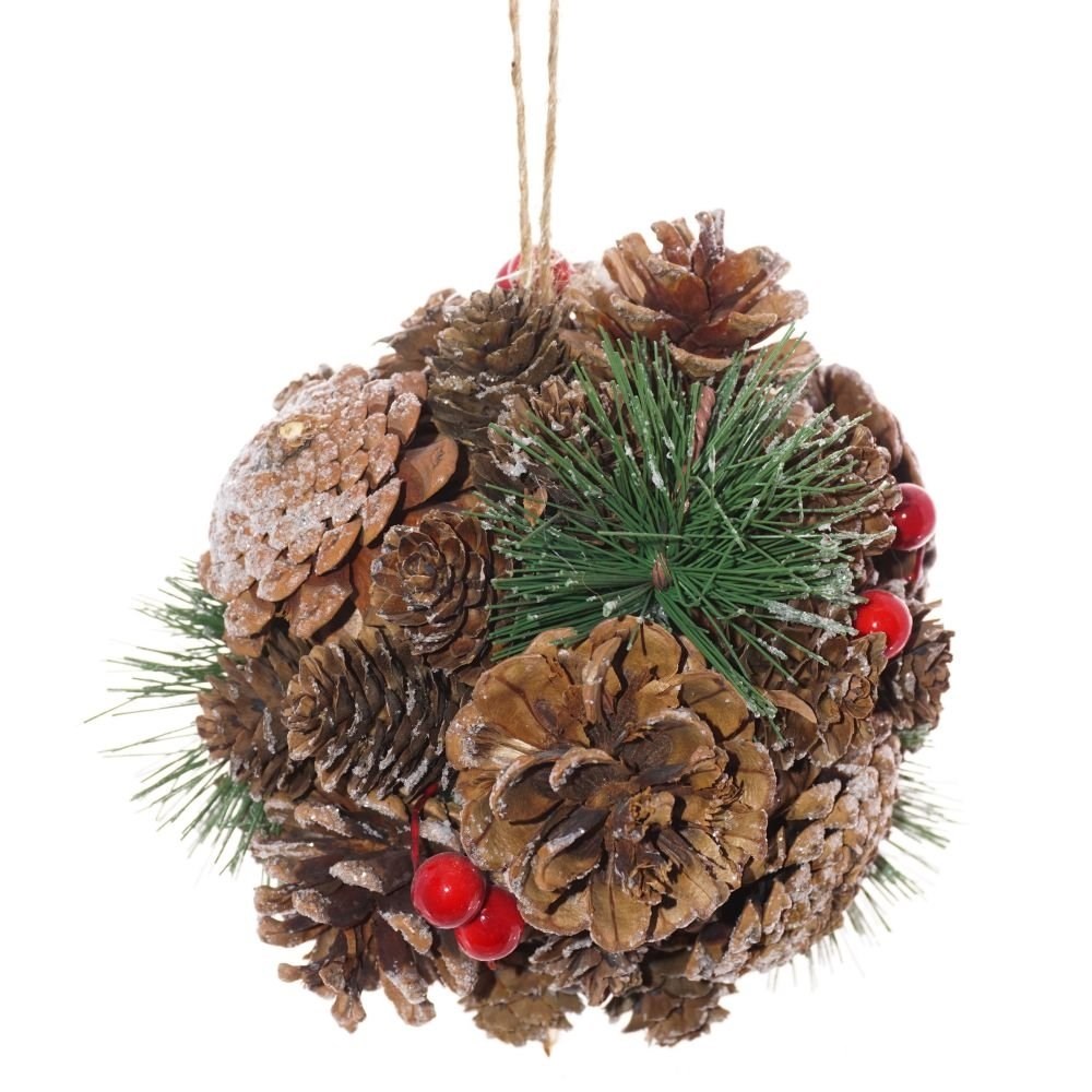 Красивый подвесной шарик из шишек, цветов, листьев, ягод, шаров и хвойных веток - роскошное новогоднее украшение. Преобразит любое помещение и наполнит его духом приближающегося Нового года и Рождества!