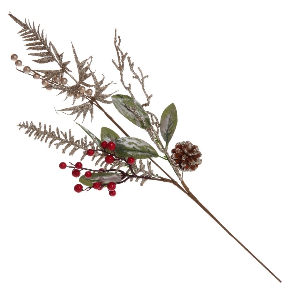 Эта новогодняя ветка – настоящая находка для праздничного декора. Станет отличным самостоятельным украшением, а также прекрасно впишется в любую композицию.