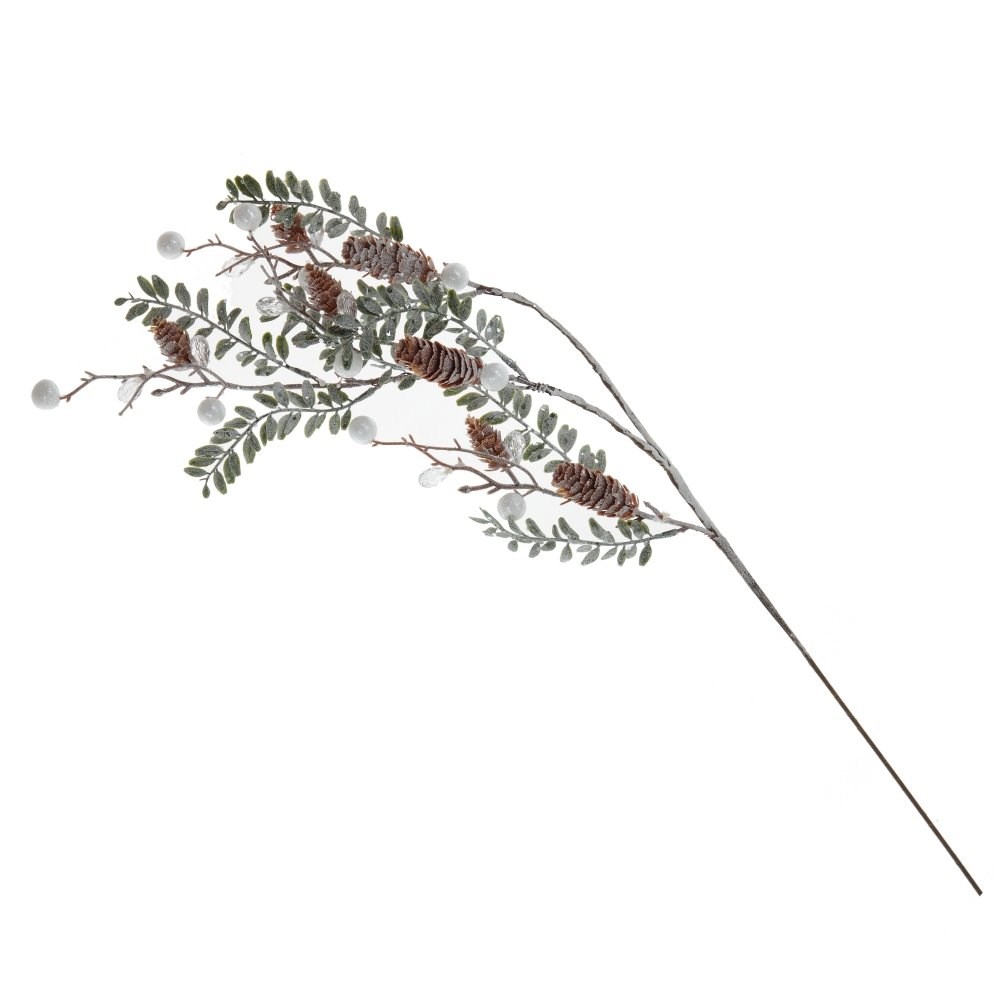 Ветка с мерцающими от глитера листьями, шишками и ягодами . Используется для новогоднего и рождественского декорирования дома. Будет прекрасно сочетаться с разными ветками и цветами в интерьерных композициях, а так же на елке.