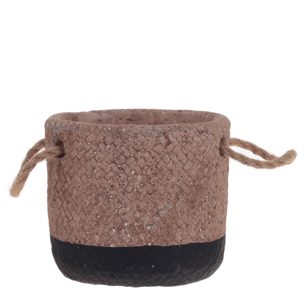 Стильное кашпо выполнено из цемента. Текстура поверхности имитирует переплетения джута, который подчеркнет красоту растений в интерьере.