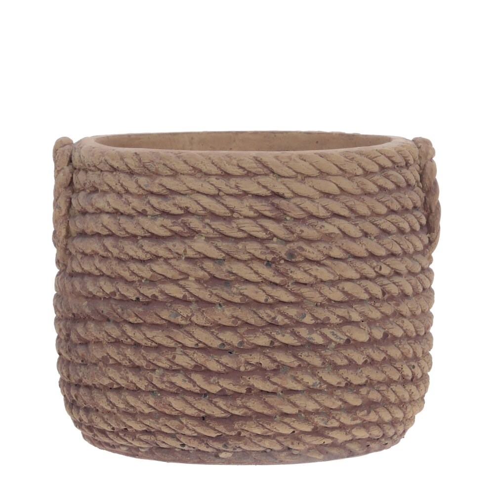Стильное кашпо выполнено из цемента. Текстура поверхности имитирует переплетения джута, который подчеркнет красоту растений в интерьере.