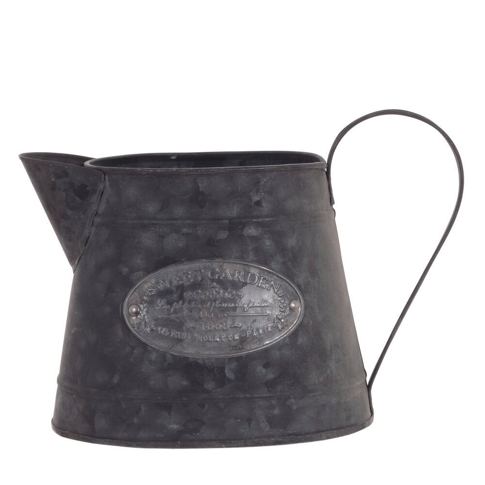 Кашпо металлическое с надписью "Sweet Garden". Красивое, в форме кувшина, используется как дома, так и на даче. Кашпо отличается интересным дизайном и модным в этом сезоне цветом.