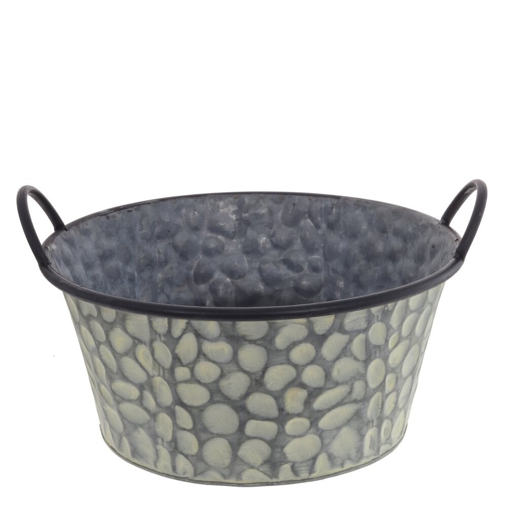 Кашпо металлическое. Красивое, с удобными ручками, используется как дома, так и на даче. Кашпо отличается интересным дизайном и модным в этом сезоне цветом.