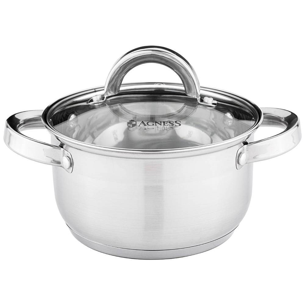 Кастрюля agness "Classic" со стеклянной крышкой 1,6 л. 16x9,5 см