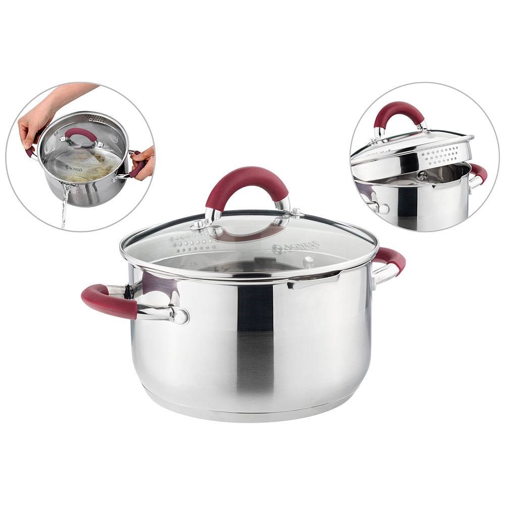 Кастрюля agness "Profi home" со стеклянной крышкой, 3,0л 20x11.5 см