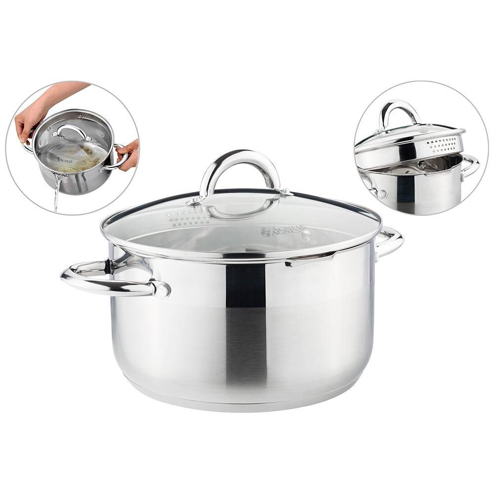 Кастрюля agness "Profi home" со стеклянной крышкой, 5,0л 24x13.5 см
