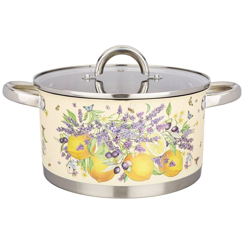 Кастрюля agness "Прованс лимоны" со стеклянной крышкой, нерж.сталь, 4,6 л 22х12 см