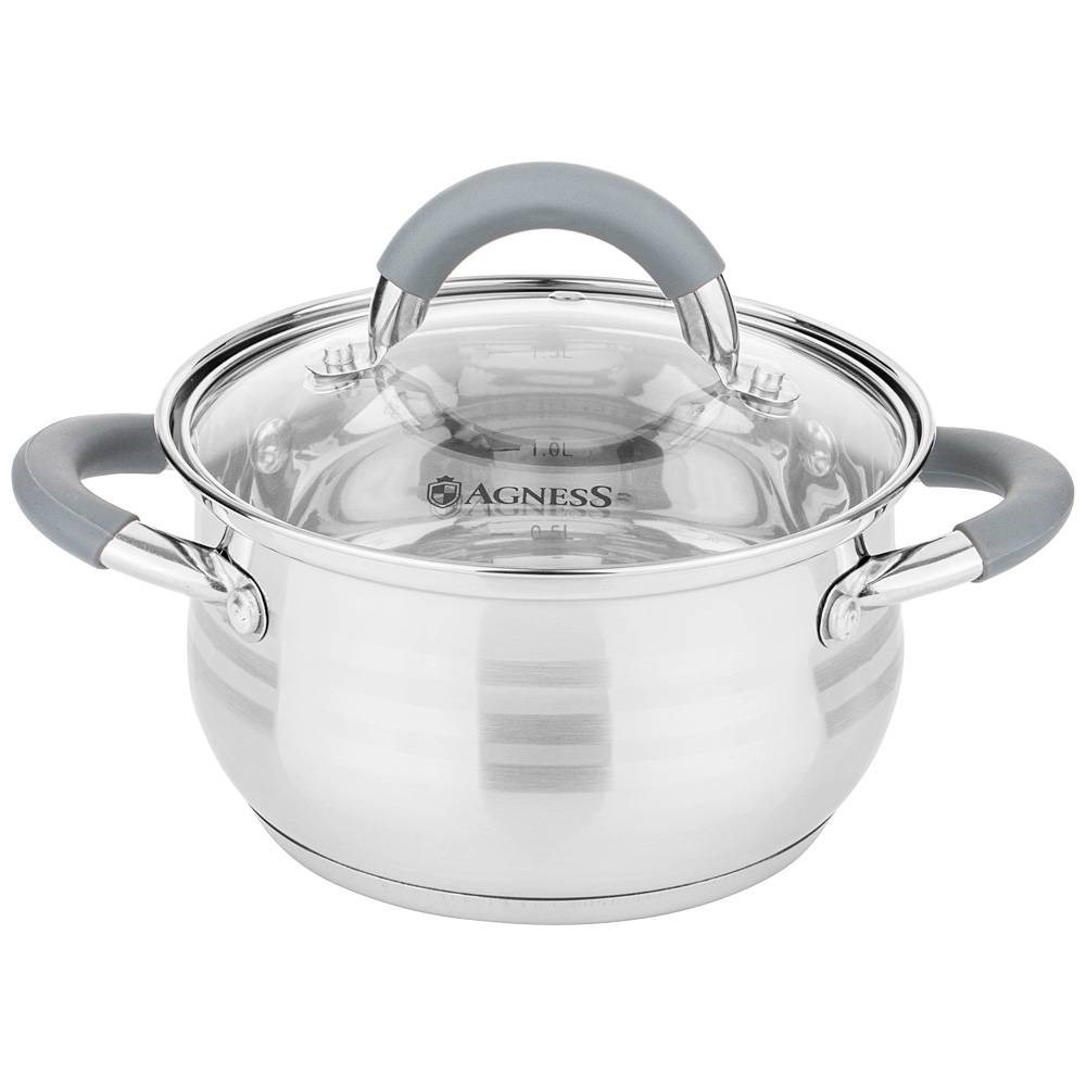Кастрюля agness со стекл. крышкой 1,7 л. 16*9,5 см