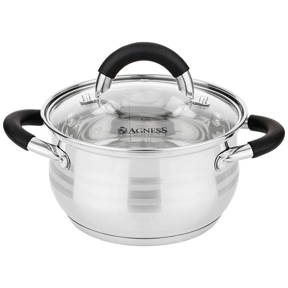Кастрюля agness со стекл. крышкой 1,7 л. 16*9,5 см