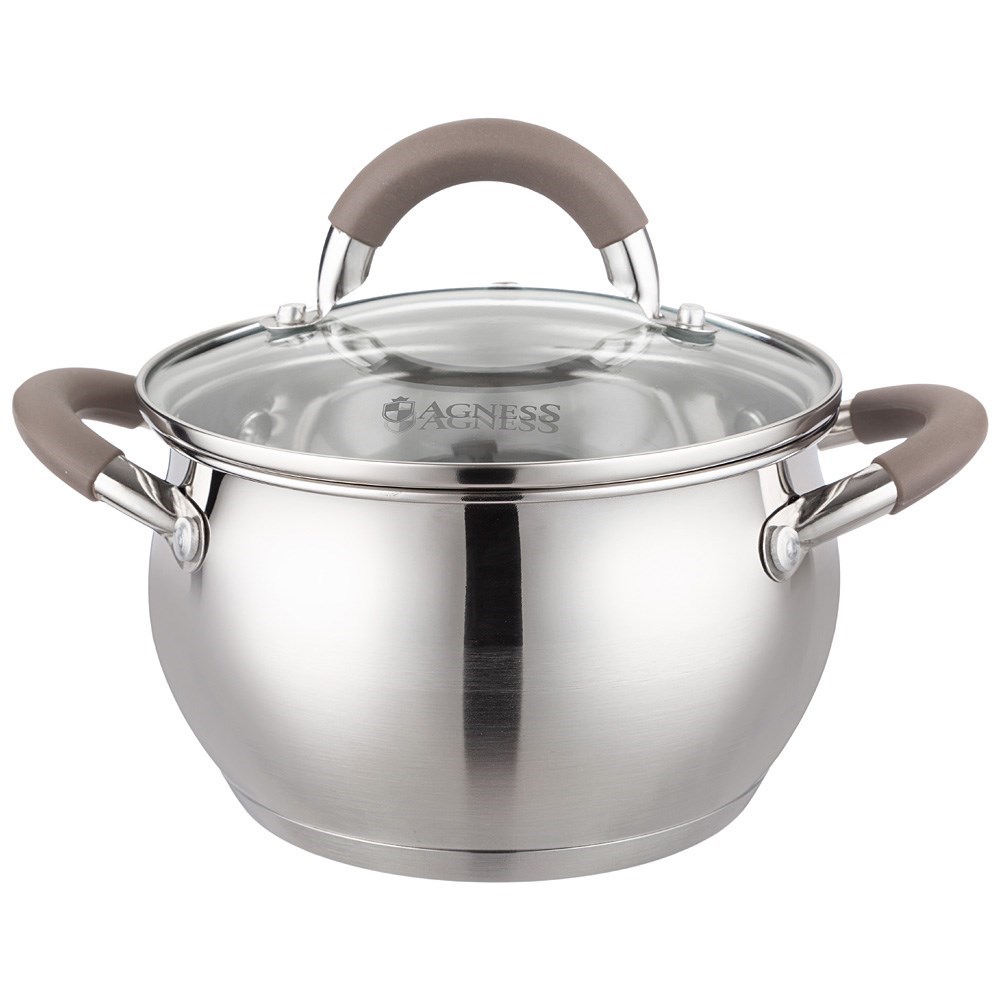 Кастрюля agness со стекл. крышкой 1,9 л. 16x9.5 см цвет: кофейный