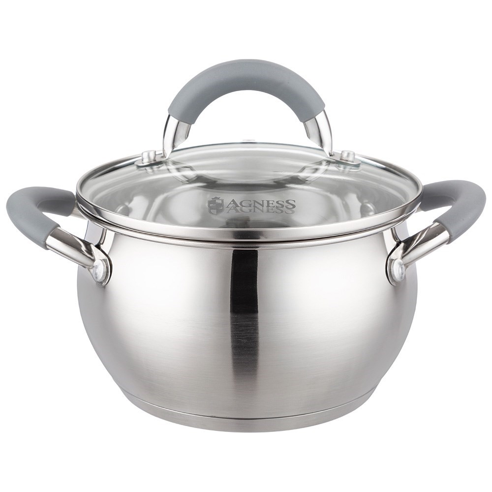 Кастрюля agness со стекл. крышкой 1,9 л. 16x9.5 см цвет: серый