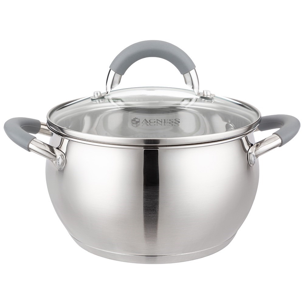 Кастрюля agness со стекл. крышкой 2,4 л. 18x10.5 см цвет: серый