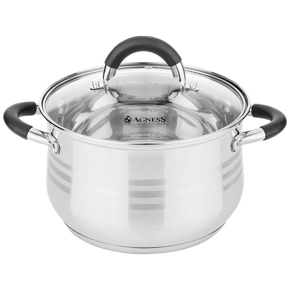 Кастрюля agness со стекл. крышкой 2,6 л. 18*11,5 см