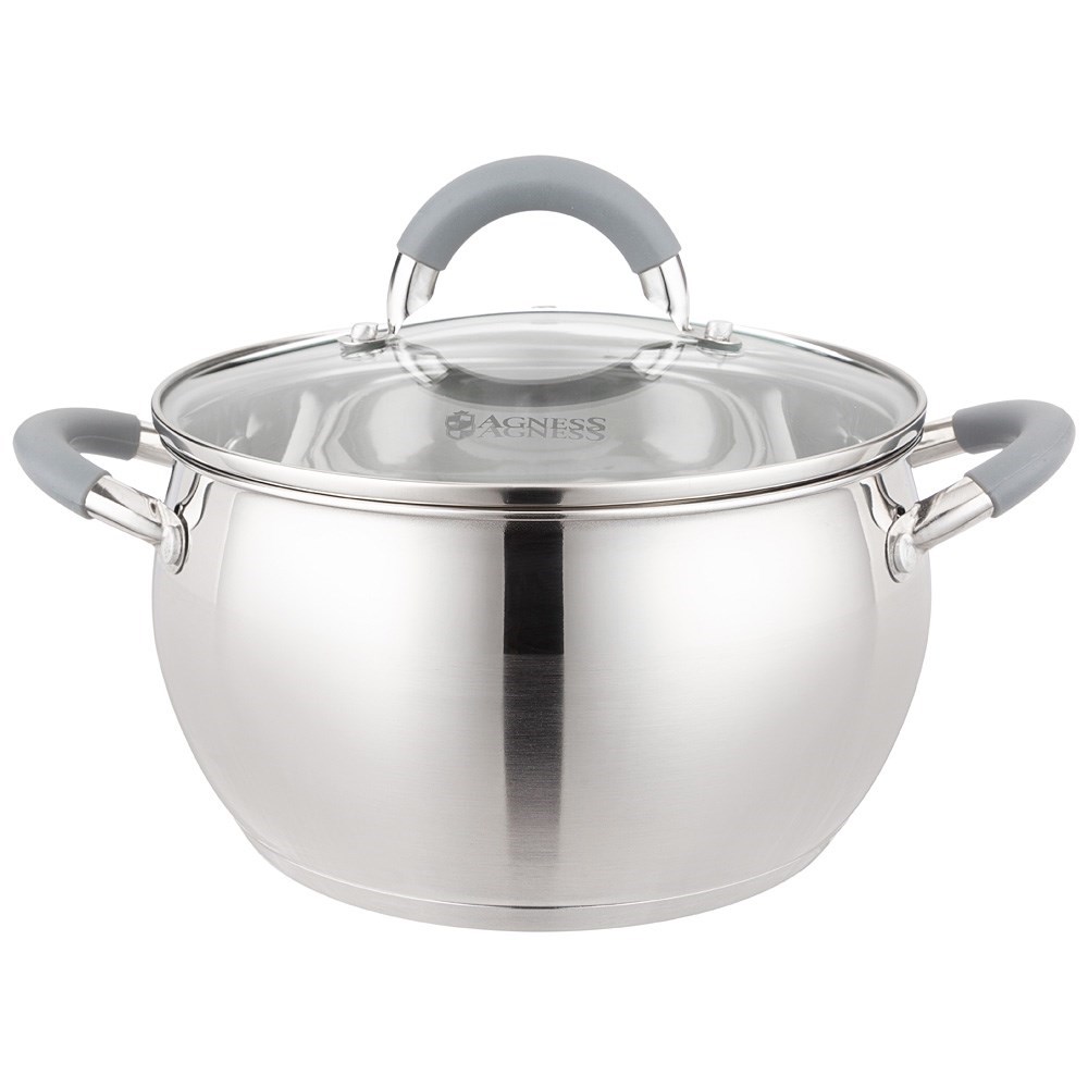 Кастрюля agness со стекл. крышкой 3,3 л. 20x11.5 см цвет: серый
