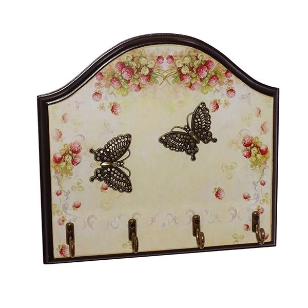 Ключница открытого вида с четырьмя крючками, изготовлена из МДФ, металла, полимерных материалов. Размер: L21,5 W3,5 H20 см, упаковка-коробка.