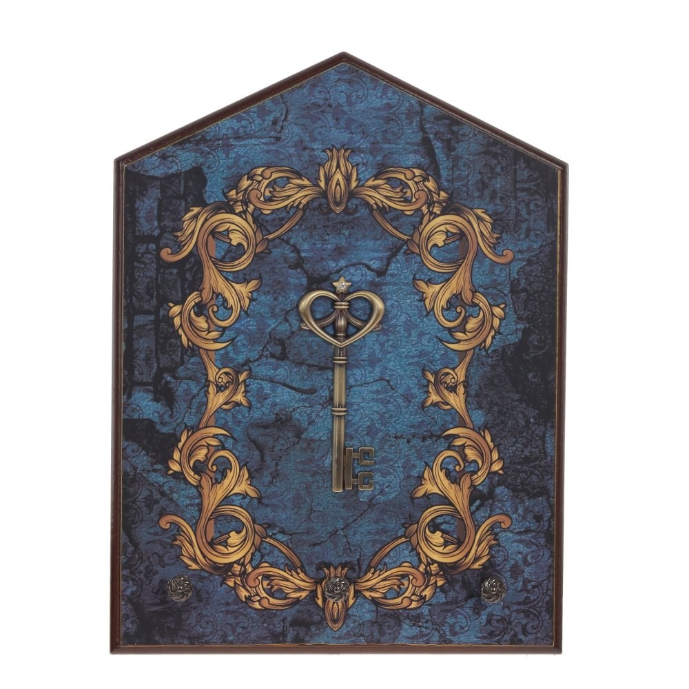 Ключница в форме домика открытого типа с тремя крючками. Украшена металлическим декором в виде ключа. Ключница – предмет не только красивый, но и функциональный, поэтому ей найдется место и в квартире, и в загородном доме.