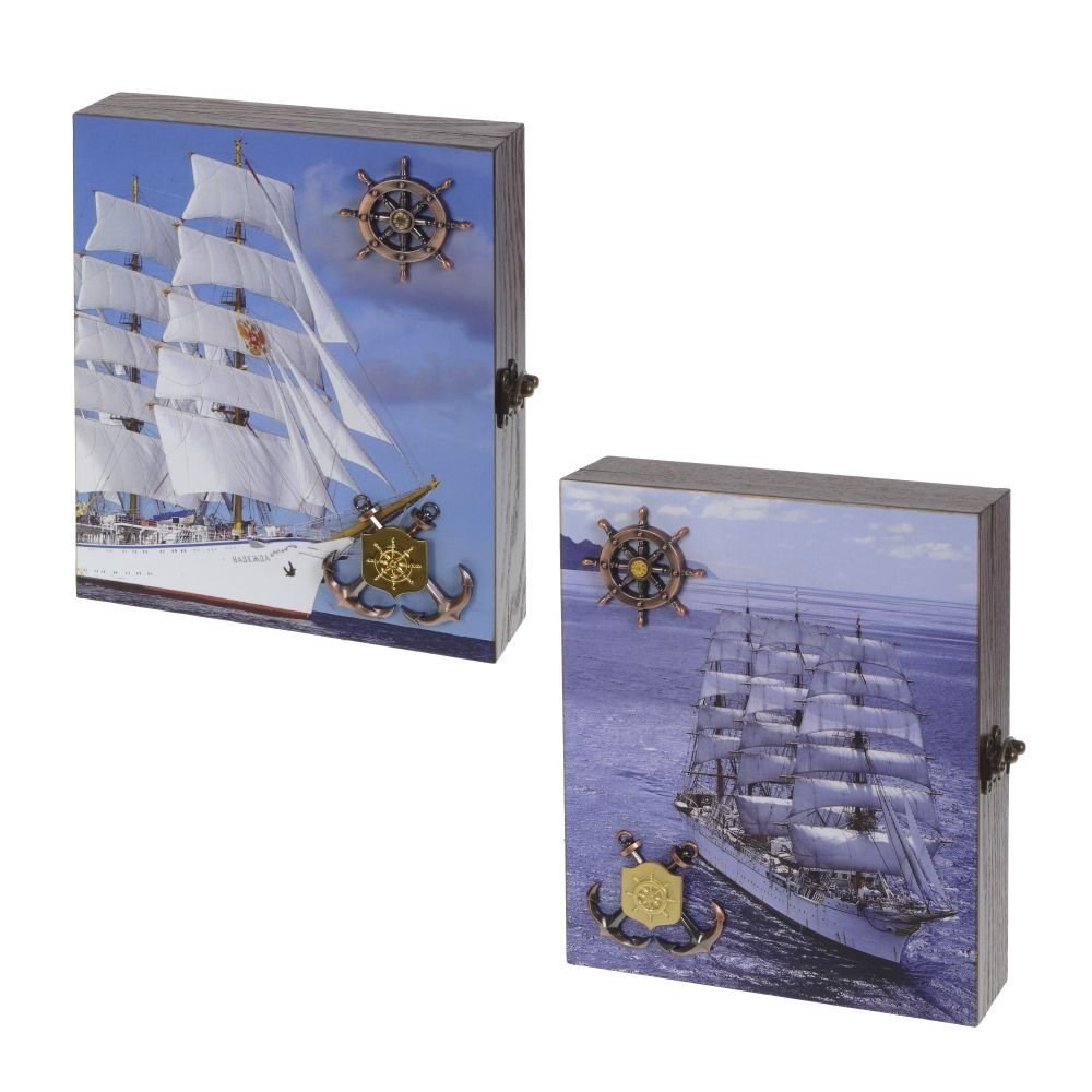 Ключница закрытого вида с пятью крючками, изготовлена из МДФ, металла, полимерных материалов. Размер: L22 W5 H28 см, упаковка-коробка. Представлена в двух вариантах.