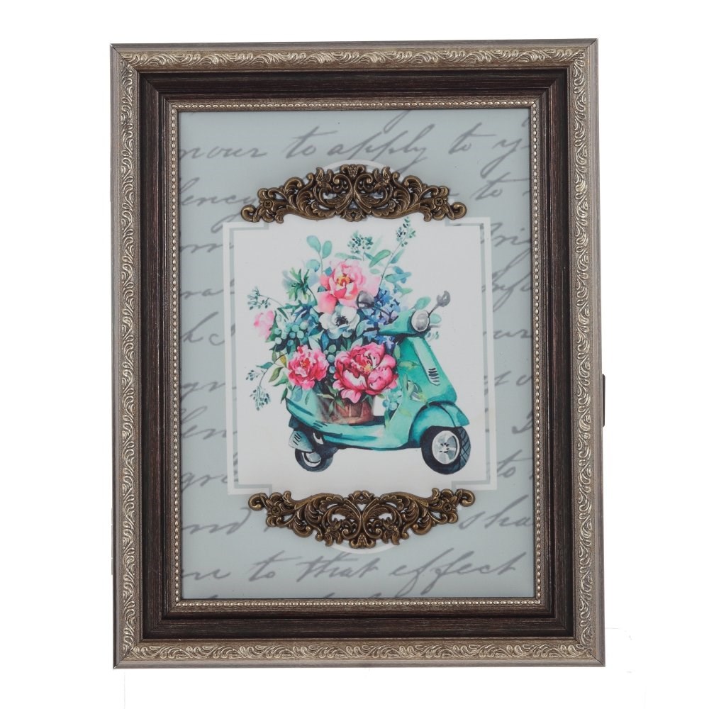 Стильная ключница для современного интерьера. Ключница закрытого типа с пятью крючками. Дверца с изображением яркого мотоцикла с цветами и ажурным металлическим декором. Закрывается сбоку на магнит. Ключница – предмет не только красивый, но и функциональный, поэтому ей найдется место и в офисе, и в квартире, и в загородном доме.