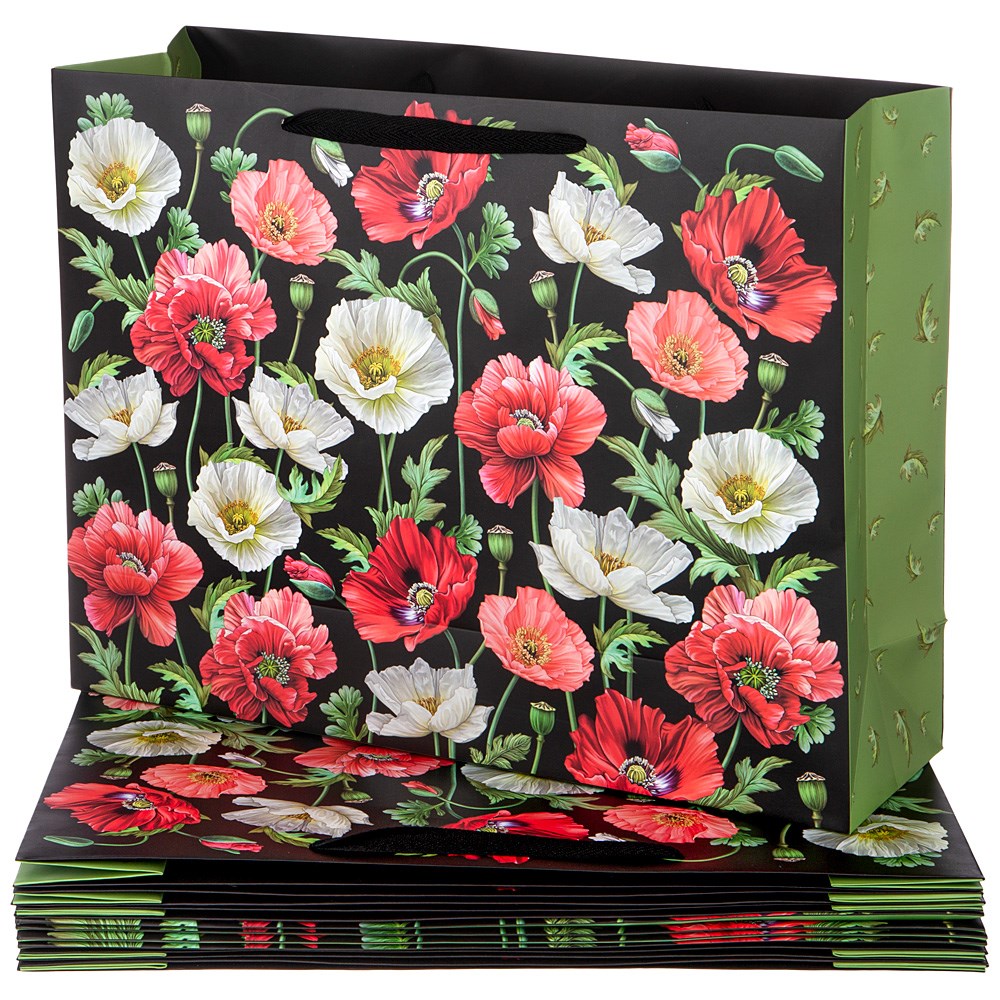 Комплект бумажных пакетов из 10 шт "Маки" 46,5*35*14,5 см