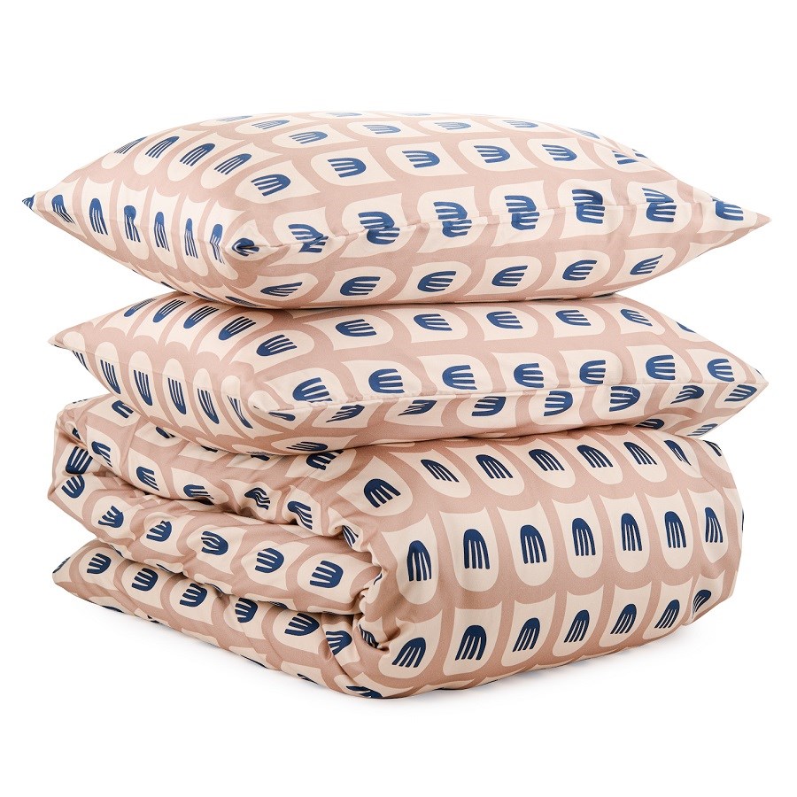 Комплект постельного белья двуспальный из сатина бежево-розового цвета с принтом blossom time из кол